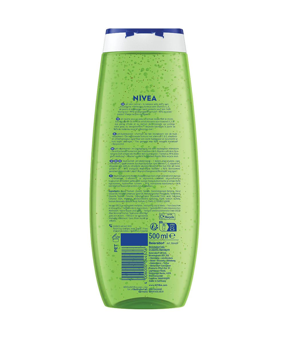 NIVEA Lemongrass & Oil Shower turns your everyday shower into a moment full of freshness and care! NIVEA cares for both your skin & the planet: this formula is 98% biodegradable+ and microplastic-free. Fresh & cared for skin never felt so good!