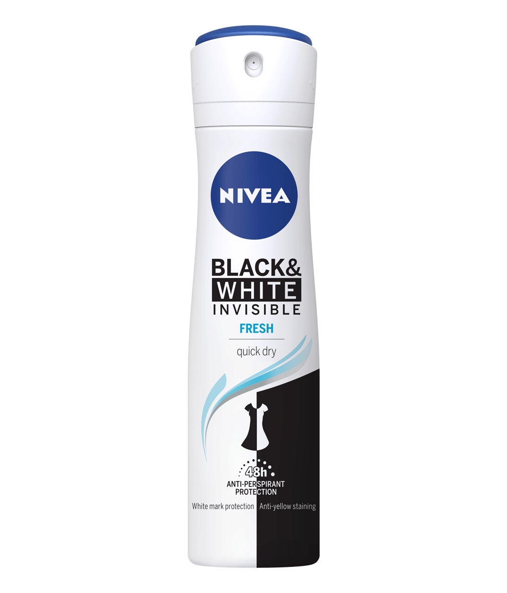 NIVEA Black & White Invisible range provides white mark protection on black clothing & anti-yellow staining on white clothing thanks to it’s unique patented anti-stains technology. It is a reliable 72h anti-perspirant protection, strong on sweat and odours, that cares for your skin.